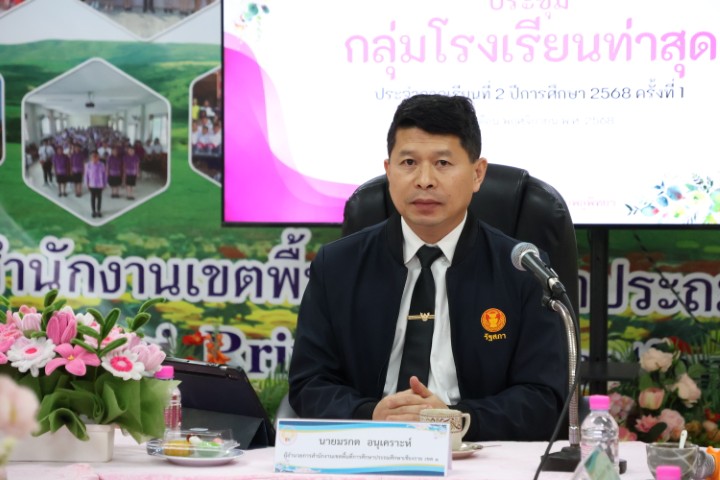 วันที่ 5 พฤศจิกายน 2568 นายมรกต อนุเคราะห์ ผอ.สพป.เชียงราย เขต 1 เป็นประธานการประชุมมอบนโยบาย เพื่อเตรียมความพร้อมการเปิดภาคเรียนที่ 2/2568 กลุ่มร.ร.ท่าสุด ประกอบด้วย ร.ร.ห้วยพลูพิทยา ร.ร.บ้านแม่ข้าวต้มท่าสุด และ ร.ร.บ้านถ้ำผาตอง ณ ห้องประชุม ร.ร.ห้วยพลูพิทยา พร้อมตรวจเยี่ยม และให้กำลังใจการเปิดเรียนภาคเรียนที่ 2 ปีการศึกษา 2568 อย่างปลอดภัย ตรวจเยี่ยมมอบนโยบายของสำนักงานคณะกรรมการการศึกษาขั้นพื้นฐาน (สพฐ.) ใหับกับโรงเรียนห้วยพลูพิทยา ต.ท่าสุด อ.เมือง จ.เชียงราย