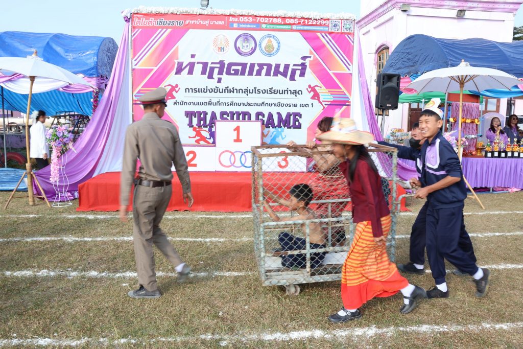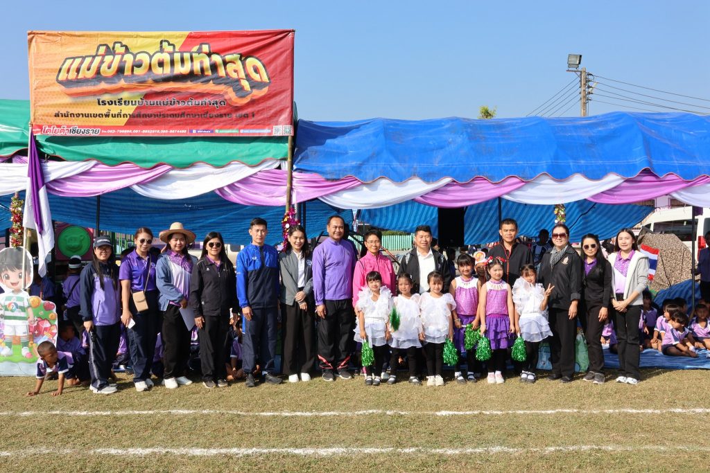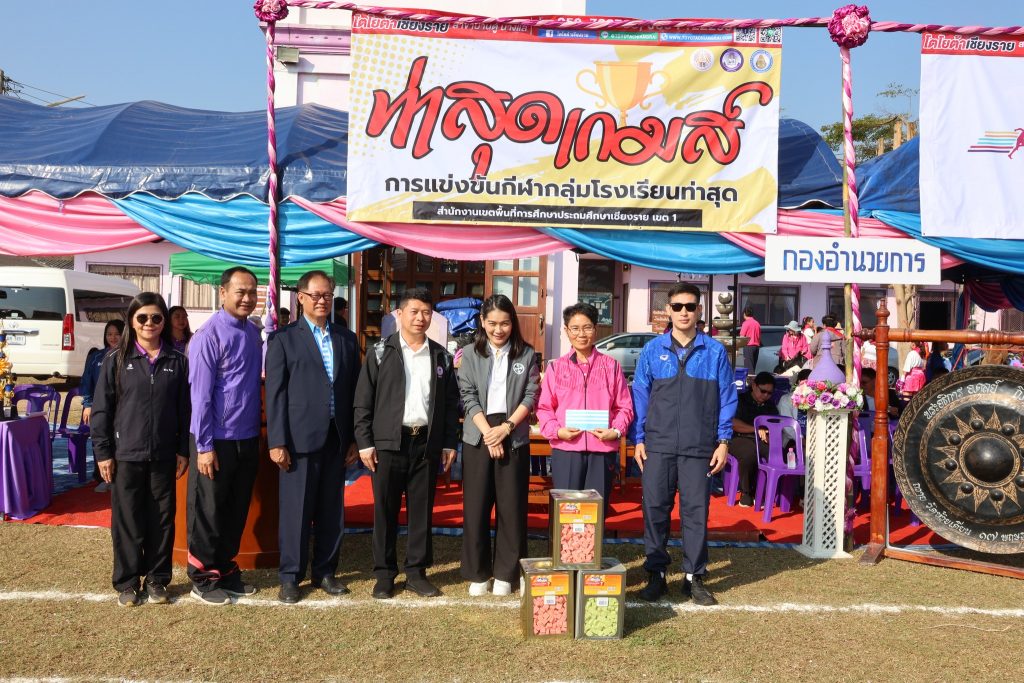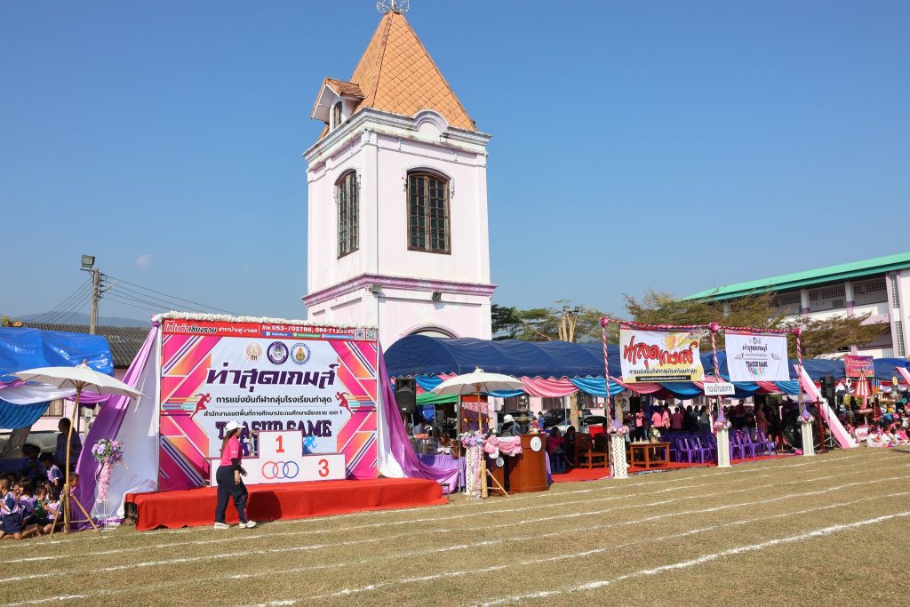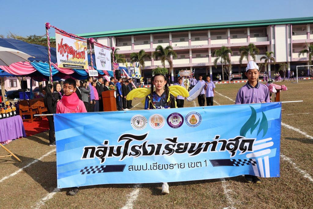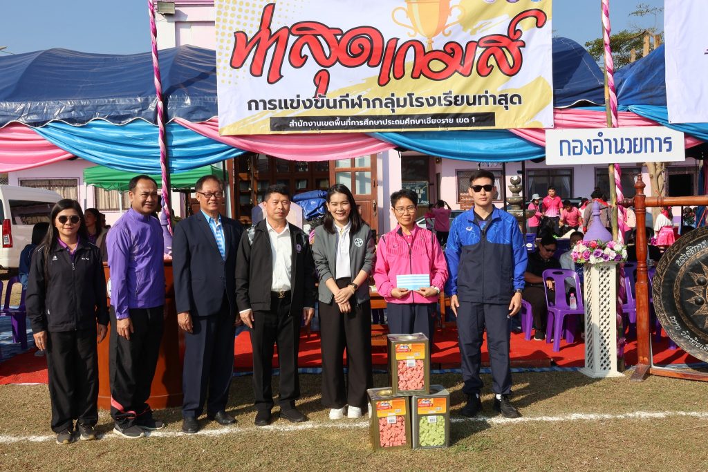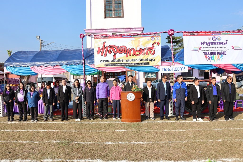 สพป.เชียงราย เขต 1 เปิดกีฬากลุ่มโรงเรียนท่าสุดเกมส์ วันที่ 14 มกราคม 2569 นายมรกต อนุเคราะห์ ผอ.สพป.เชียงราย เขต 1 เป็นประธานเปิดกีฬากลุ่มโรงเรียนท่าสุดเกมส์ ประจำปีการศึกษา 2568 ประกอบด้วยโรงเรียนบ้านแม่ข้าวต้มท่าสุด โรงเรียนห้วยพลูพิทยา และโรงเรียนบ้านถ้ำผาตอง เพื่อสร้างเสริมสนับสนุนให้นักเรียนได้เล่นกีฬา มีสุขภาพ พลานานัยที่แรง สร้างความสามัคคีให้เกิดขึ้นระหว่างนักเรียน และคณะครูภายในกลุ่มโรงเรียน ส่งเสริมสนับสนุนการจัดการเรียนการสอนให้บรรลุตามวัตถุประสงค์ของหลักสูตร ส่งเสริมการใช้เวลาว่างให้เกิดประโยชน์ และห่างไกลยาเสพติด ณ สนามกีฬาโรงเรียนบ้านแม่ข้าวต้มท่าสุด ต.ท่าสุด อ.เมือง จ.เชียงราย Read more articles Previous Postสพป.ชร.1 รับฟังการชี้แจงแนวทางขับเคลื่อนประชาธิปไตย สำหรับการออกเสียงประชามติที่กำหนดวันออกเสียงในวันเดียวกับวันเลือกตั้ง ส.ส. Next Postสพป.ชร.1 ร่วมรับชมรายการพฤหัสเช้าข่าว สพฐ. ครั้งที่ 2/2569 You Might Also Like อ.ก.ต.ป.น. สพป.ชร.1 ติดตาม ตรวจสอบ ประเมินผลและนิเทศการศึกษาของกลุ่มโรงเรียนห้วยชมภู 17 สิงหาคม 2023 สพฐ Cluster 16 จัดสัมมนาการบริหารสำนักงานเขตพื้นที่การศึกษาให้เป็นองค์กรสมรรถนะสูง 5 ตุลาคม 2021 สพป.เชียงราย เขต 1 ร่วม “เดิน วิ่ง ปั่น ป้องกันอัมพาต” ครั้งที่ 11จังหวัดเชียงราย 4 พฤศจิกายน 2025 สพป.เชียงราย เขต 1 พัฒนาศักยภาพครูในการจัดการเรียนรู้วิทยาการคำนวณและการออกแบบทางเทคโนโลยี 17 พฤษภาคม 2024 #สพป.ชร.1 ร่วมรับชมรายการพฤหัสเช้าข่าว สพฐ. ครั้งที่ 23/2568 17 มิถุนายน 2025 ผอ.สพป.เชียงราย เขต 1 ตรวจเยี่ยมโรงเรียนพร้อมรับเปิดเทอม 25 พฤษภาคม 2023 #ผอ.สพป.เชียงราย เขต 1 ตรวจเยี่ยมโรงเรียนอนุบาลนางแล(บ้านทุ่ง) ให้กำลังใจและสนับสนุนบริหารงานการศึกษา 4 ด้าน 20 พฤษภาคม 2025 สพป.เชียงราย เขต 1 ร่วมประชุม สพฐ. เตรียมเป็นเจ้าภาพระดับภาคเหนือ คัดเลือกรางวัล OBEC AWARDS 29 มิถุนายน 2022 สพป.ชร.1 ประเมินวิทยฐานะเชี่ยวชาญ ผู้อำนวยการโรงเรียนบ้านนางแลใน 29 พฤศจิกายน 2021 ประชุมคณะกรรมการจัดทำแผนปฏิบัติการ สพป.เชียงราย เขต 1 สู่การปฏิบัติอย่างมีประสิทธิผลในปีงบประมาณ 2565 15 ตุลาคม 2021 สพป.ชร.1 เปิดบ้านวิชาการ “แลกเปลี่ยนเรียนรู้ สู่มาตรฐานสากล ยลวิถีพอเพียง” โรงเรียนชุมชนบ้านแม่ข้าวต้มหลวง 26 มีนาคม 2024 สพป.ชร.1 พบปะภาคีเครือข่ายลูกเสือเชียงราย ร่วมหารือความร่วมมือกันพัฒนากิจการลูกเสือเชียงรายให้ก้าวหน้าพัฒนา 12 ธันวาคม 2023 อ.ก.ค.ศ. เขตพื้นที่การศึกษาประถมศึกษาเชียงราย เขต 1 ประชุมครั้งที่ 8/2566 17 สิงหาคม 2023 Evaluation Team สพป.เชียงราย เขต 1 ประเมินสัมฤทธิผลการปฏิบัติงานในหน้าที่ผู้อำนวยการสถานศึกษา 8 โรงเรียน ตามตัวชี้ว