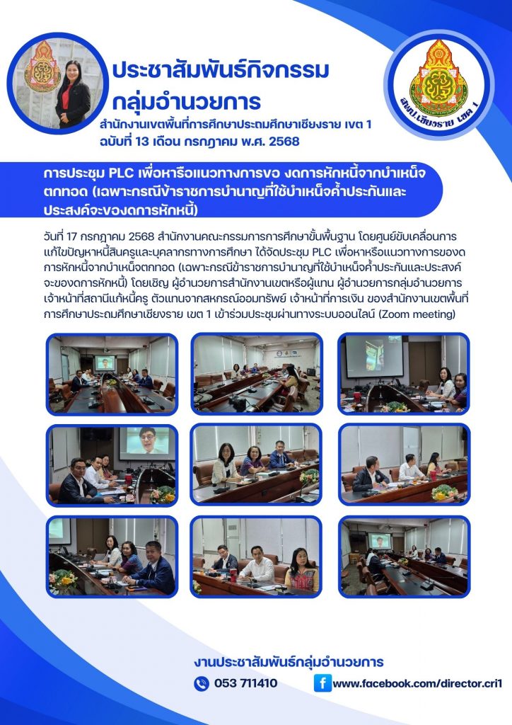 การประชุม PLC เพื่อหารือแนวทางการขอ งดการหักหนี้จากบำเหน็จตกทอด (เฉพาะกรณีข้าราชการบำนาญที่ใช้บำเหน็จค้ำประกันและประสงค์จะของดการหักหนี้)