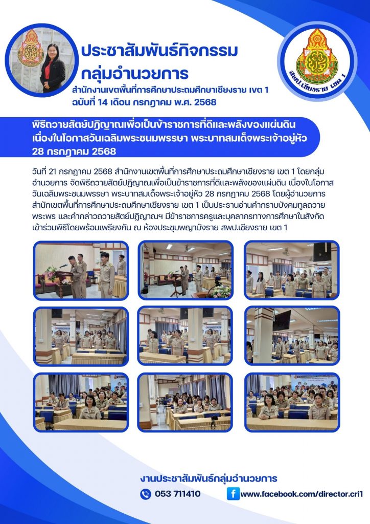 พิธีถวายสัตย์ปฎิญาณเพื่อเป็นข้าราชการที่ดีและพลังของแผ่นดิน เนื่องในโอกาสวันเฉลิมพระชนมพรรษา พระบาทสมเด็จพระเจ้าอยู่หัว 28 กรกฎาคม 2568